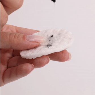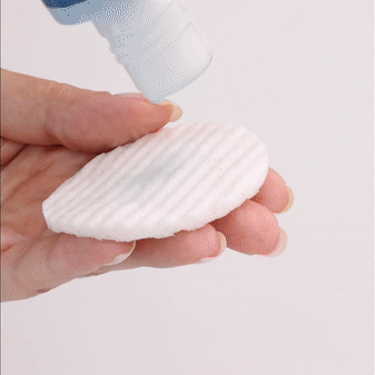 LastRound is naturally quite stiff, but it becomes soft and wonderful to use when you add a little water. Squeeze out any excess before adding your remover, toner, or other products (don’t worry, they won’t get diluted and the round absorbs just the right amount).